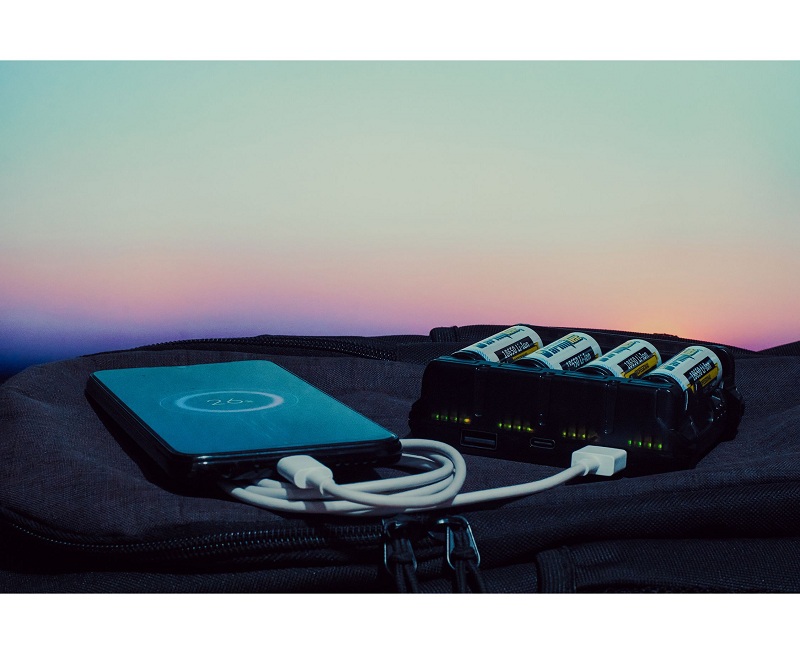 • Handy C4 Pro is a portable charger for 4 batteries. The Powerbank function supports devices with a charging current of up to 2.5 A and is compatible with iPhone and iPad. The intelligent powerbank management system draws power from any number of channels, ensuring maximum efficiency. Made of non-flammable material.