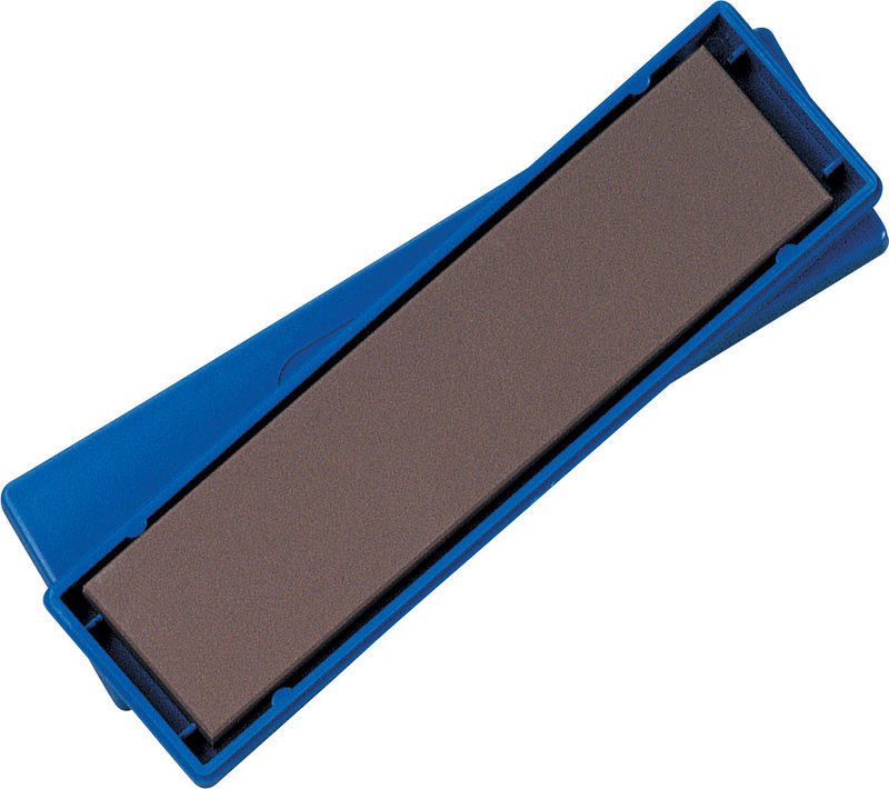 Made from ultra-hard alumina, the Spyderco stone bench is used like a traditional grinding stone, but does not require oil or water. Its wide, flat surface is ideal for sharpening woodworking tools and all types of knives, and can be easily cleaned with household cleaner, a degreasing pad and water. This stone comes in a dark blue polymer case with non-slip rubber feet. Made in the USA.