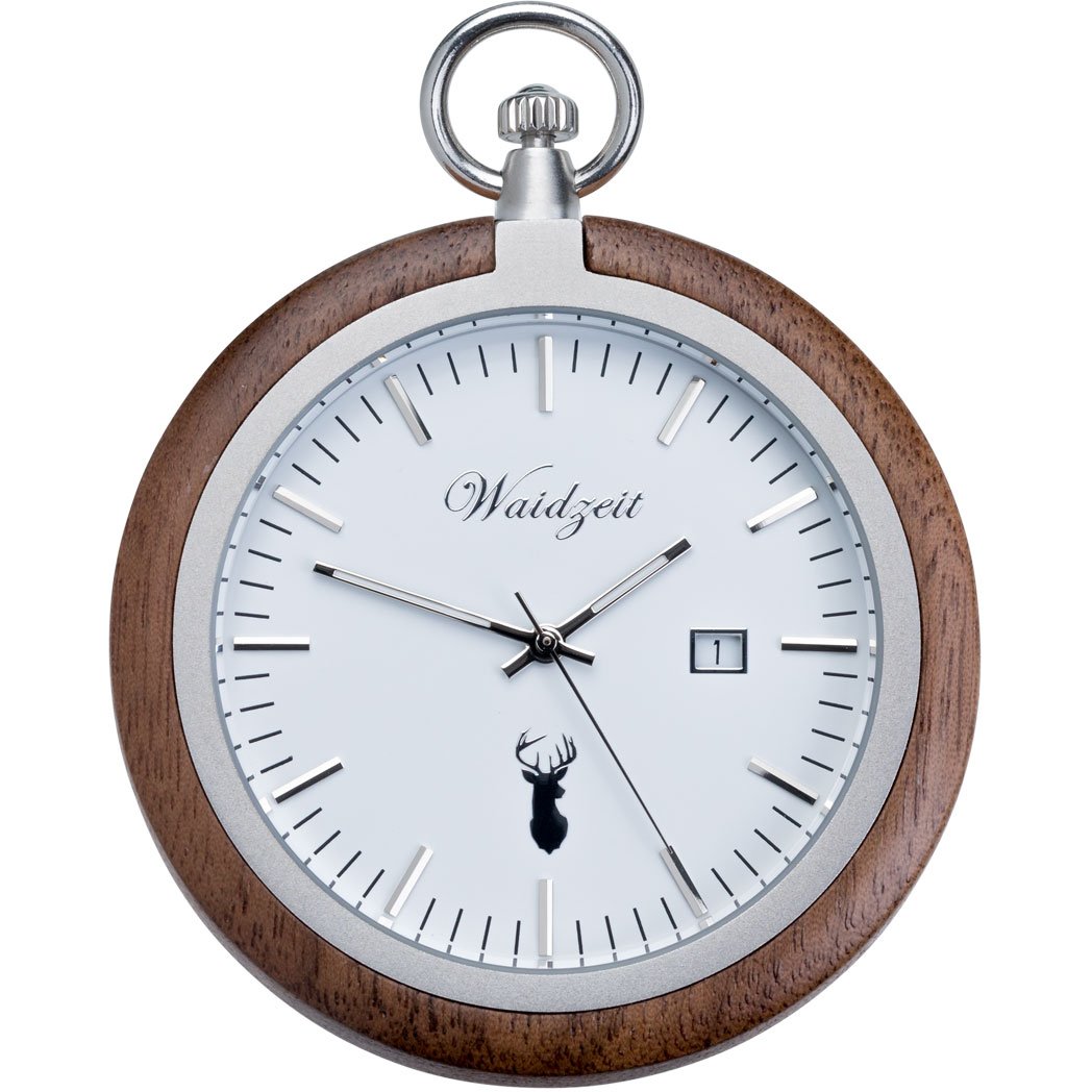 The elegant pocket watches of the Alpin edition are crafted by valued hand from walnut wood. The detachable snow-white dial with si